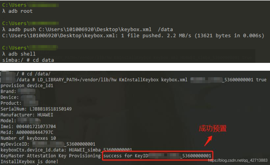烧入原理为将 keybox.xml 文件中对应 DeviceID 为xxx_53600000001