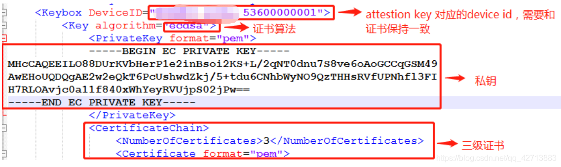 说明:keyboxes.xml 为谷歌提供的 attestion key 库,里面包含 n 条 attestion key