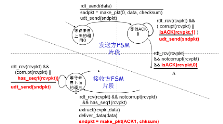 Rdt2.2 无NAK协议,代替NAK,接收方对最后正确接收的分组发送ACK。