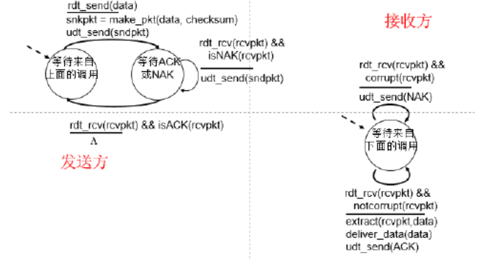 Rdt2.0:经具有比特差错信道的可靠数据传输(肯定确认、否定确认)