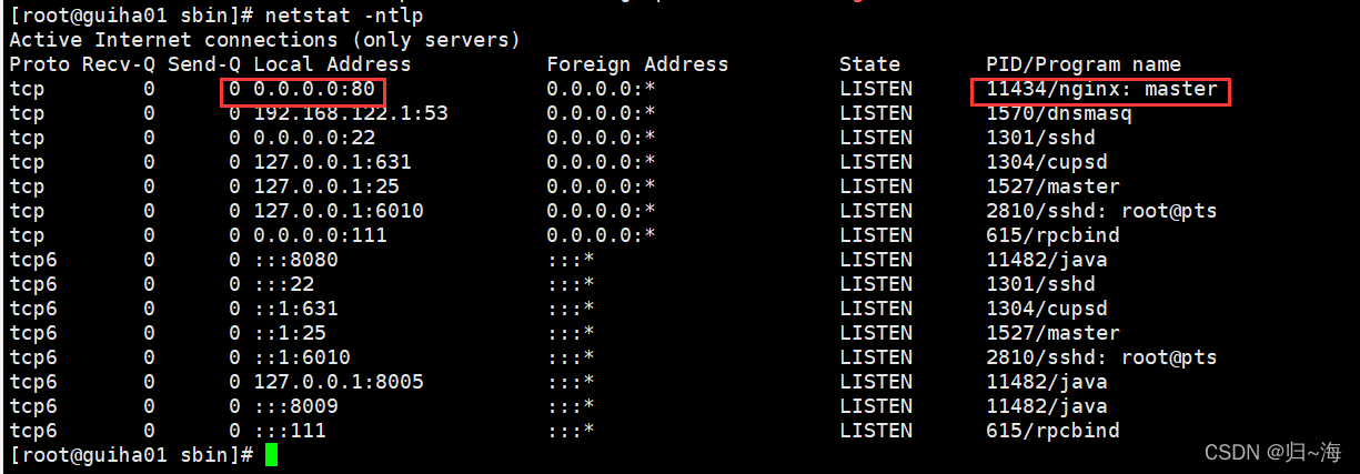 2)输入:netstat -ntlp