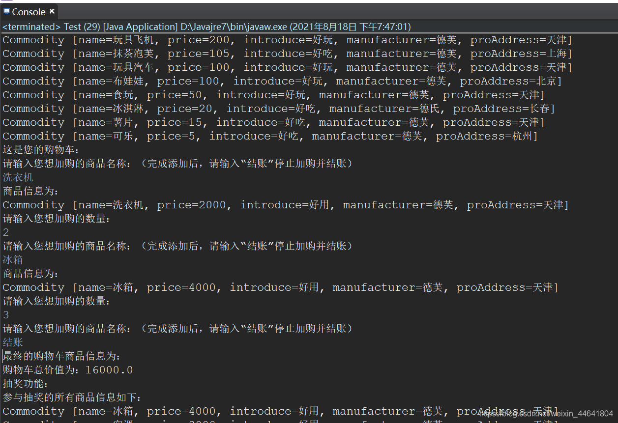 //List<Commodity> car=new ArrayList<Commodity>();//购物车
