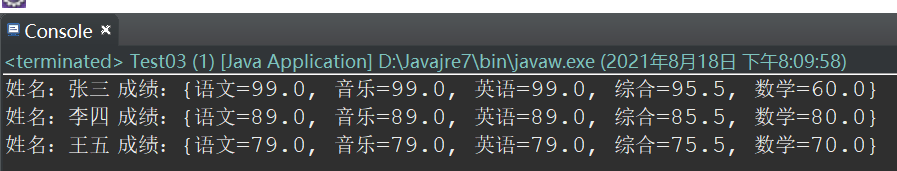 System.out.println("姓名:"+k+"\t成绩:"+v);