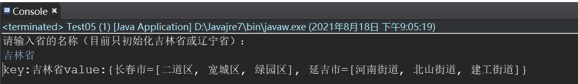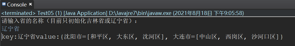 System.out.println("请输入省的名称(目前只初始化吉林省或辽宁省):");