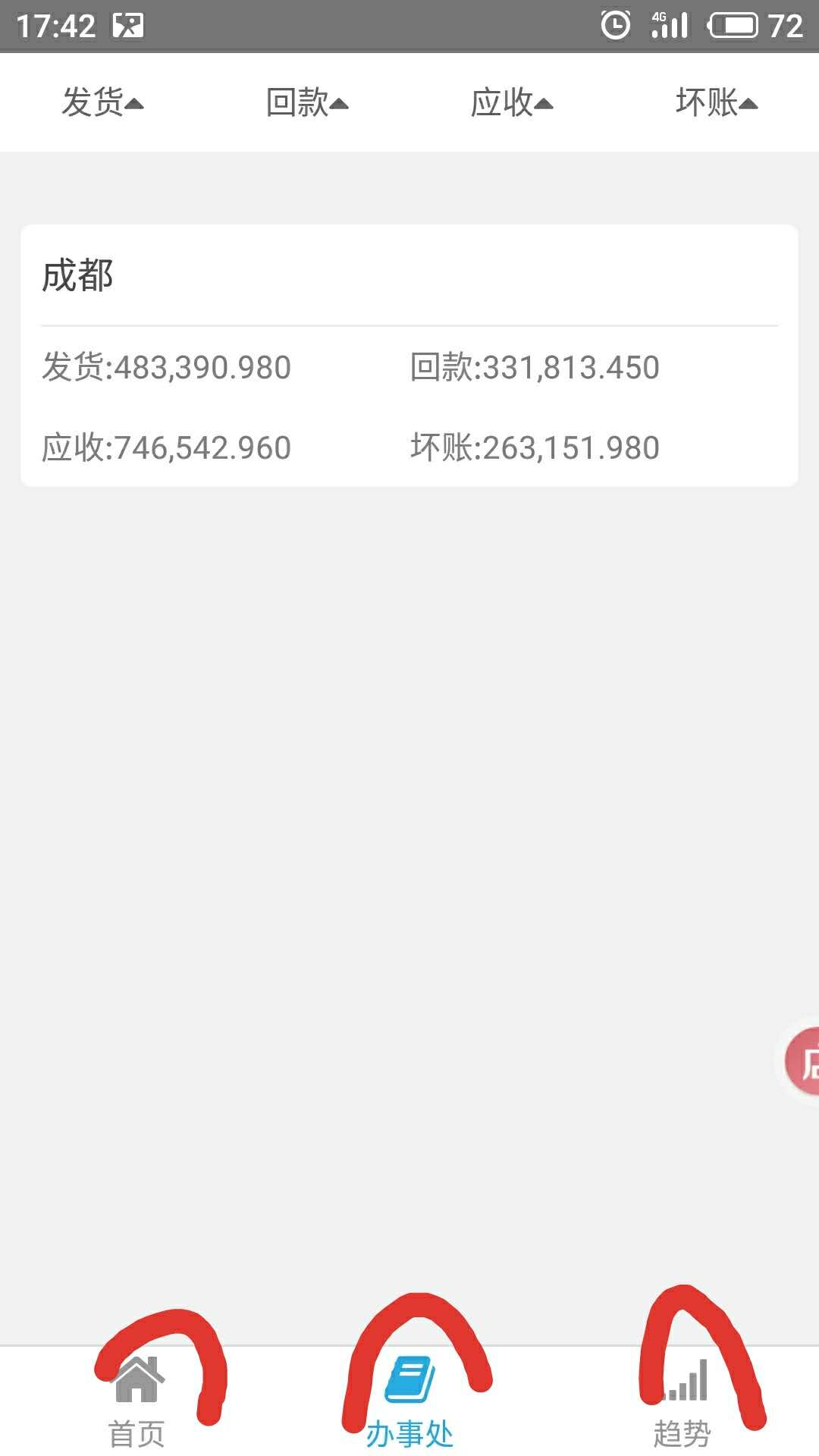 首页,办事处,趋势,组成一个tabbar,点击首页和办事处,页面时正常的tabbar切换,底部tabbar导航也存在底部,但是点击趋势时,tabbar跳转了,因为底部tabbar不在显示在底部,并且趋势页面有返回按钮。