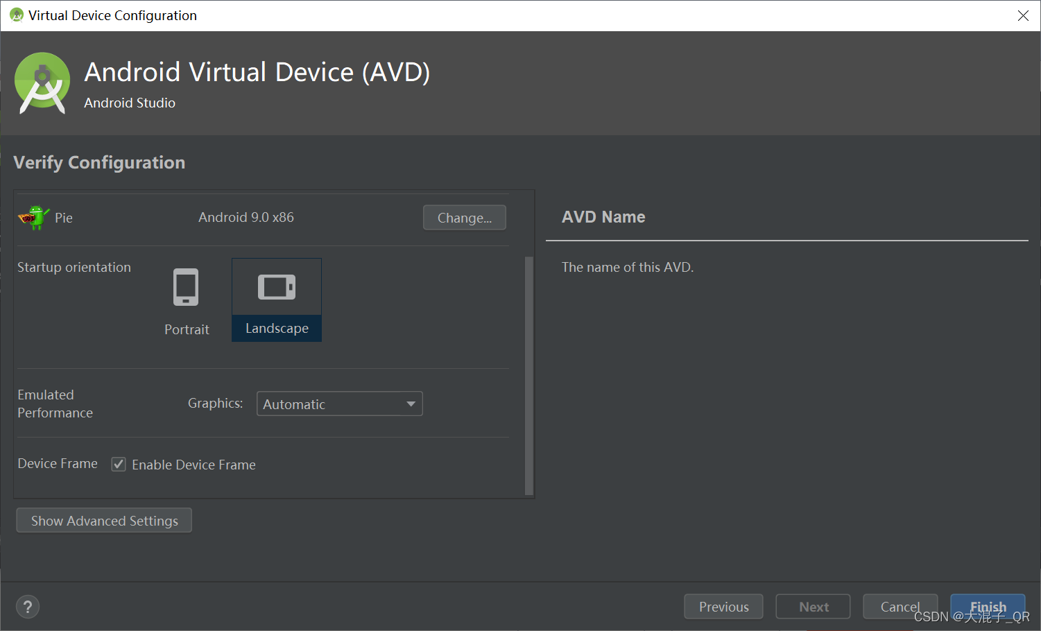 这里选择横屏的模拟器,方便我们查看,其实也可以进行后期翻转,不过现在选择就会方便很多。然后点击finish就可以得到模拟器了,我们打开来看看。