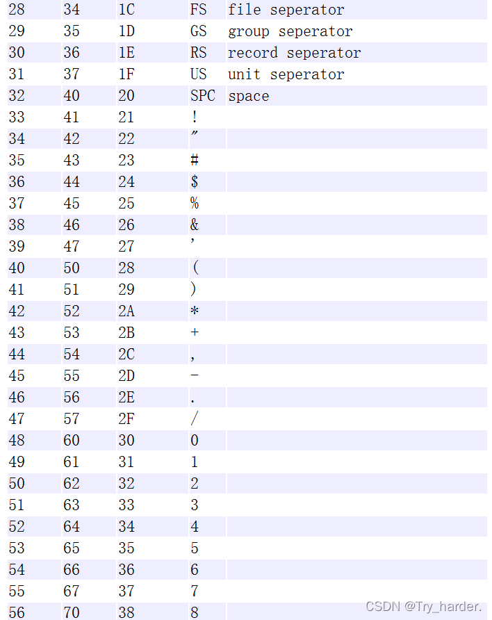 1、空格— 32 2、+ — 43 3、- —45 4、* —42 5、/ —47