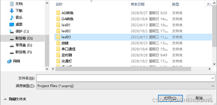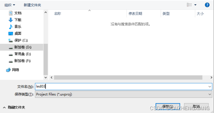 这里新建一个工程文件名,我习惯性跟文件名同名,即“led03”,然后点击保存。