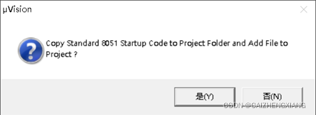这里问你是否 将标准8051启动代码复制到Project文件夹并将文件添加到项目?这里我们不需要,点击否