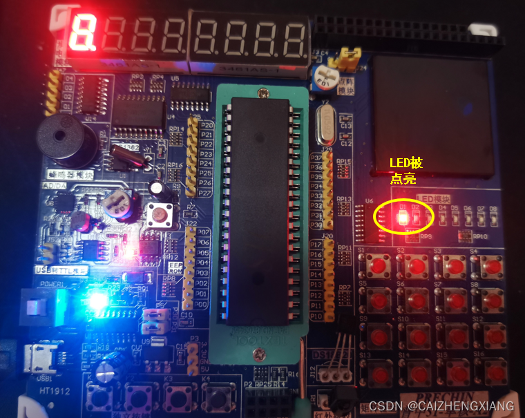 实验现象: 下载程序后,LED指示灯点亮