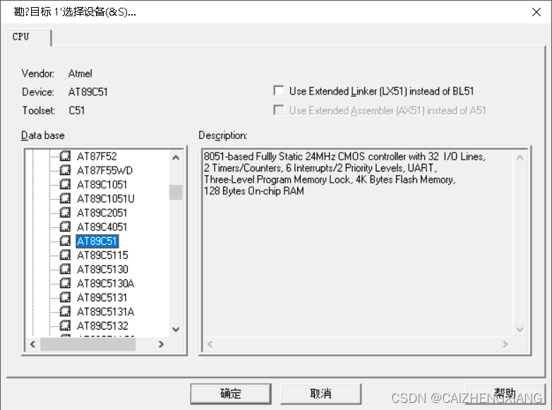 选择芯片型号,我选择的路径是: Atmel->AT89C51,然后点击确认。