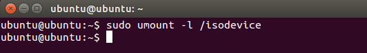 按Ctrl+Alt+T打开终端,输入“sudo umount –l /isodevice”,取消光盘驱动器挂载,否则在后面安装过程中可能会无限卡进度: