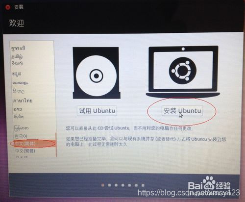 - 稍等片刻后,将进入ububtu13.04的安装界面,这里我们选择了“中文(简体)”,然后单击安装: