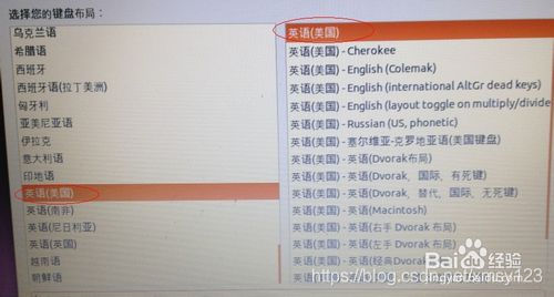 - 之后的步骤就没什么复杂了,按着提示点击“继续”就行了,有一项选择键盘布局的,默认是“汉语”,建议大家选择“英语(美国)”,如下图: