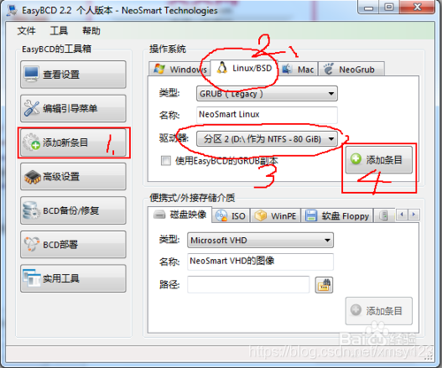 1)EasyBCD个人版是免费的,可以在华军下载: http://www.onlinedown.net/soft/58174.htm,下载完后双击运行安装,