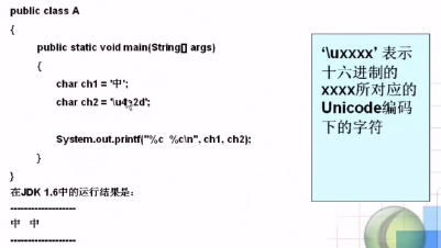 - Java中字符和字符串都用Unicode编码表示