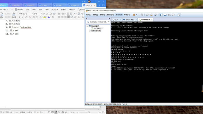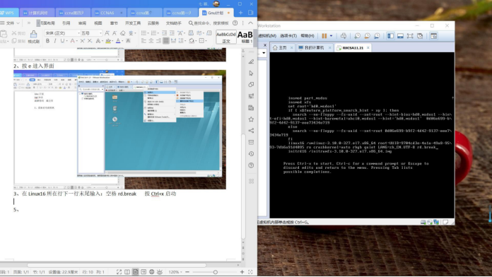 3.输入mount -o remount,rw /sysroot (mount挂载 -o选项 remount重新挂载 rw以读写的方式 在/sysroot目录下)