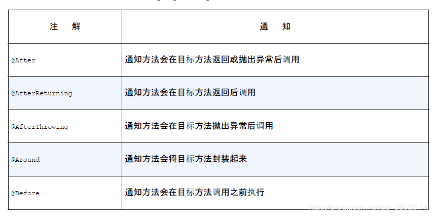 通知的类型: 前置通知 后置通知 返回通知 异常通知 环绕通知
