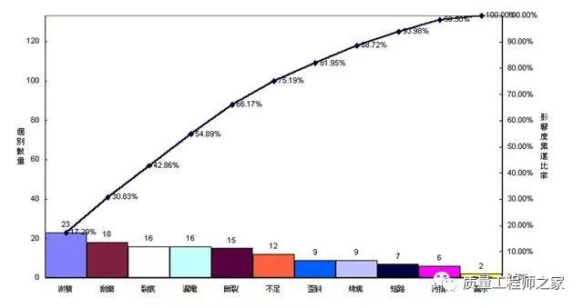 经济学上的80/20原则用到管理领域,其基本原理是区分“关键的少数”和“次要的多数”,这样有助于抓关键因素,解决主要问题,为直观起见,用图形表示出来,这一图形便是排列图。