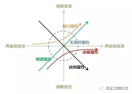 日本质量专家Kano把质量依照顾客的感受及满足顾客需求的程度分成三种质量:理所当然质量、期望质量和魅力质量。