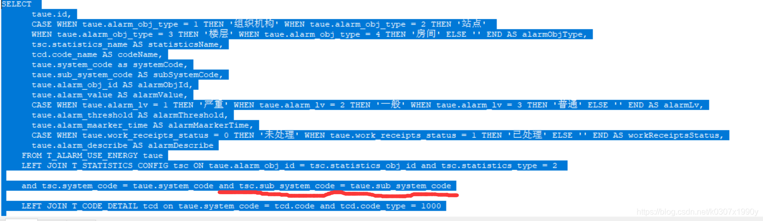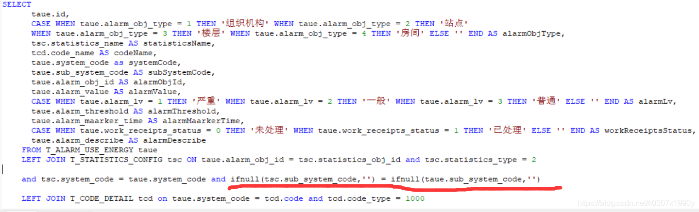 例如两个表T_ALARM_USE_ENERGY表和T_STATISTICS_CONFIG表的sub_system_code值都有可能是null