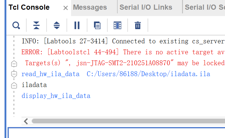 然后再display_hw_ila_data。我的vivado是window版的,目录路径是/,如果写成\则会出错