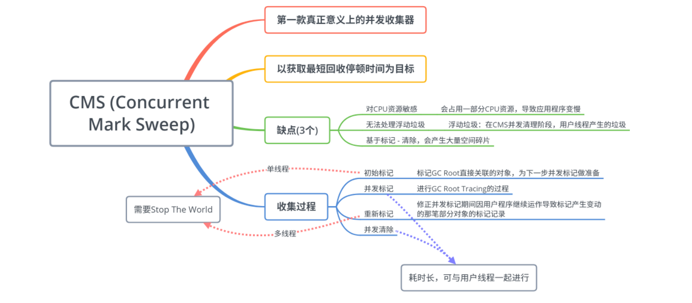 通常CMS尽量运行Final Remark阶段在年轻代是足够干净的时候,目的是消除紧接着的连续的几个STW阶段。