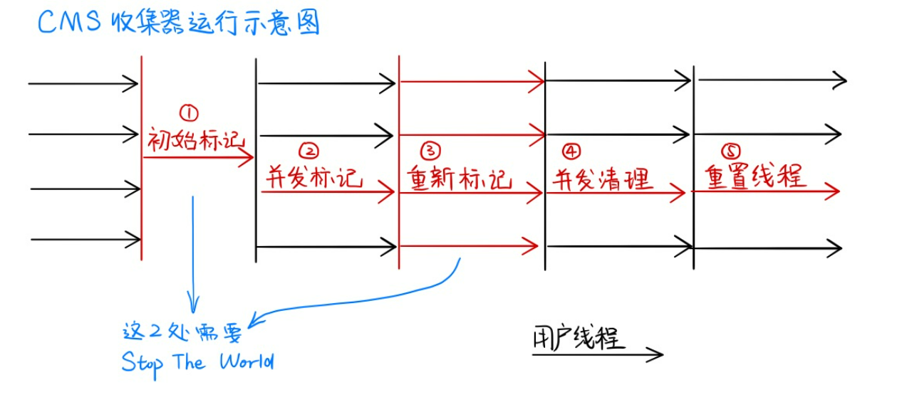 这个阶段是CMS中第二个并且是最后一个STW的阶段。该阶段的任务是完成标记整个年老代的所有的存活对象。由于之前的预处理是并发的,它可能跟不上应用程序改变的速度,这个时候,STW是非常需要的来完成这个严酷考验的阶段。