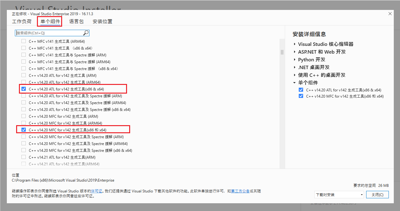 选择 单个组件 勾选如下4个组件
