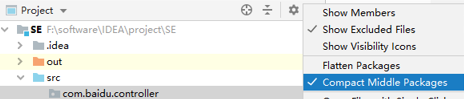 IDEA中包默认折叠,如何展开?IDEA中,我们定义的包默认是折叠的,如下图接下来我们将它展开,点右上角的齿轮把√点掉,就完成啦版权声明:本文为weixin_43724203原创文章,遵循CC 4.0 BY-SA版权协议,转载请附上原文出处链接和本声明。原文链接:https://blog.csdn.net/weixin_43724203/article/details/108678914