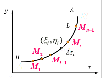 如图,将弧段AB分割成若干份,取任意一份表示为Δs。求和