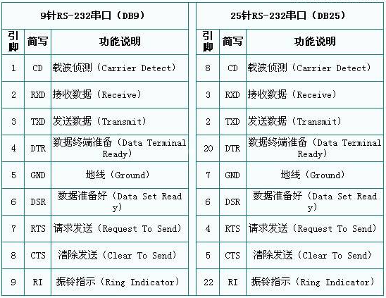 目前较为常用的串口有9针串口(DB9)和25针串口(DB25),通信距离较近时(<12m),可以用电缆线直接连接标准RS232端口(RS422,RS485较远),若距离较远,需附加调制解调器(MODEM)。最为简单且常用的是三线制接法,即地、接收数据和发送数据三脚相连。