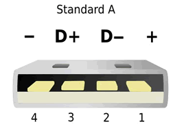USB通过一根4线的电缆传送信号和电源,其中D+、D-用于传输差分信号,另两个是电源线,四个线的名字可以通过颜色加以区分。
