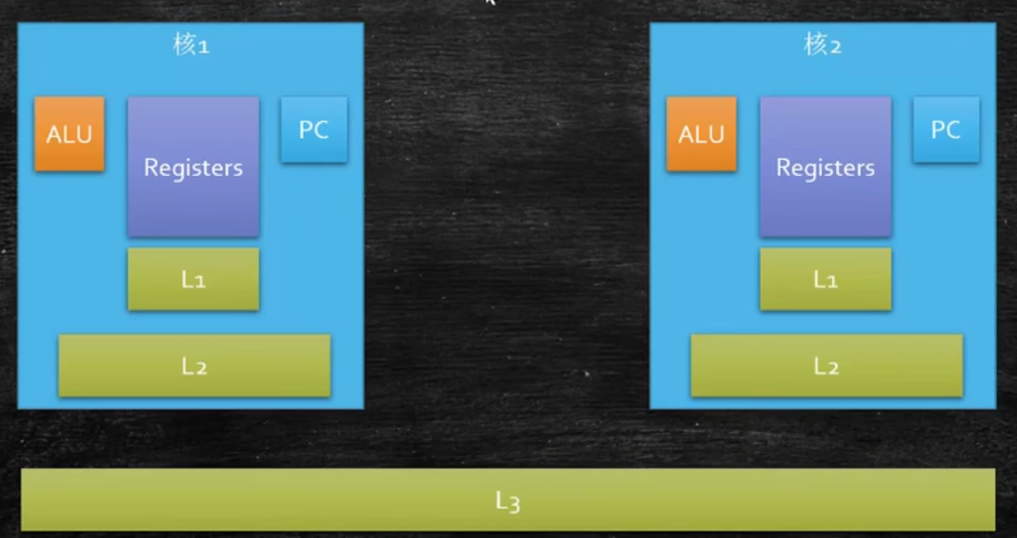 一个核中有多套PC和Register,他们公用一个ALU,这样一个核可以处理多个线程
