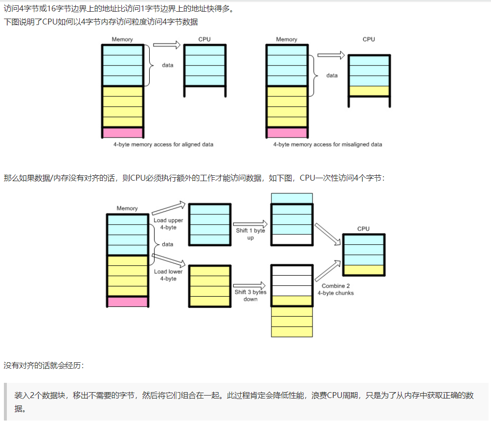 当CPU需要读取一个变量时,该变量所在的以64字节分组的内存数据将被一同读入高速缓存行,所以,对于性能要求严格的程序来说,充分利用高速缓存行的优势非常重要。一次性将访问频繁的64字节数据对齐后读入高速缓存中,减少CPU高级缓存与低级缓存、内存的数据交换。