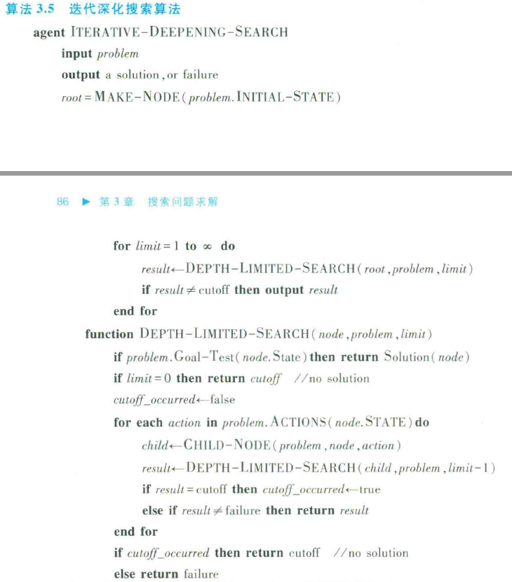 迭代深化搜索将深度优先和宽度优先的优势相结合,逐步增加深度限制l,直到找到目标为止。在每次迭代内部,它以深度优先搜索的顺序遍历搜索树的节点;但在迭代之间,其顺序相当于宽度优先。迭代深化搜索也被称为迭代深化深度优先搜索。