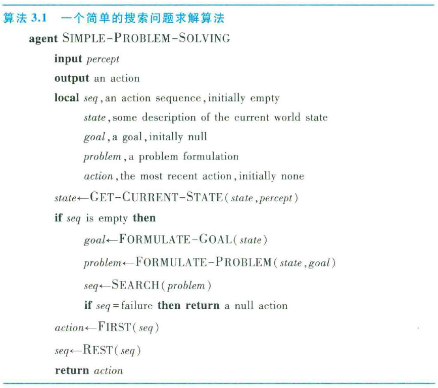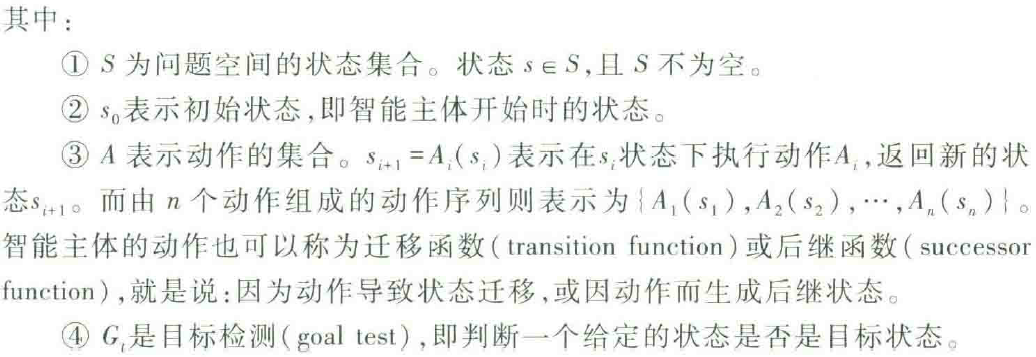 搜索问题的解是一个从初始状态到达目标状态的路径,搜索问题的求解就是智能主体寻找该路径的动作。