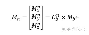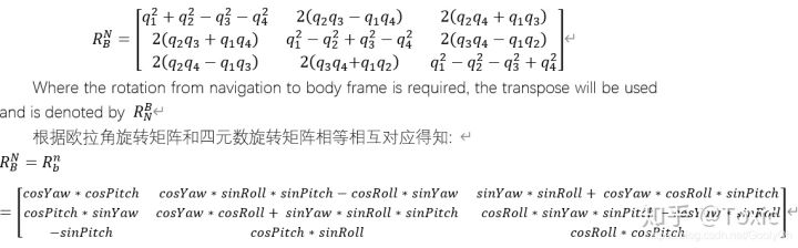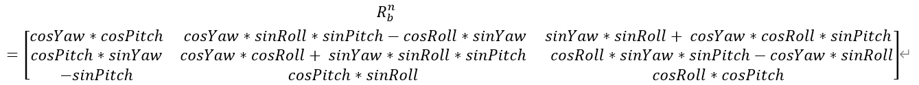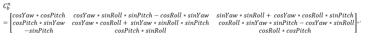 DCM矩阵为(我们使用的是北东地下的ZYX旋转):