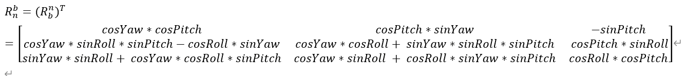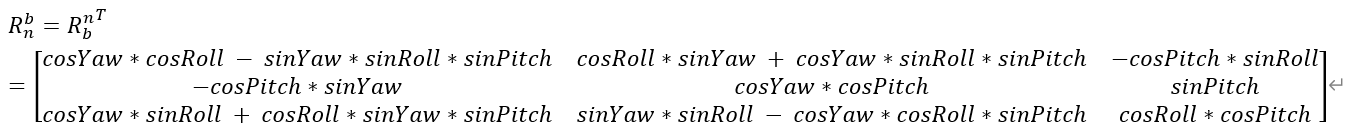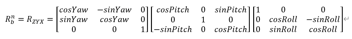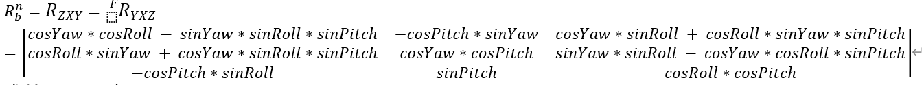 根据外旋内旋规则那么得到内旋的旋转矩阵R_b2n:从载体系到参考系: