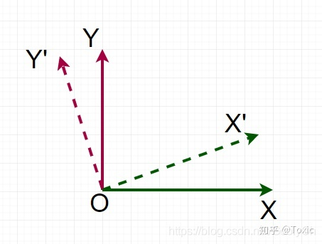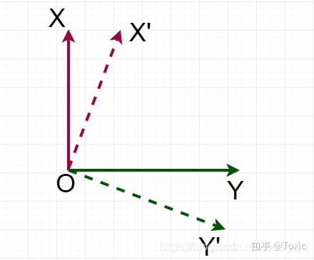 Z轴朝下,右手定则,绕Z轴转,我们只关注XY平面上发生的变化,整体变化是从XY坐标系变到了X'Y'坐标系,同样是XY变化。