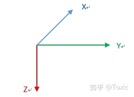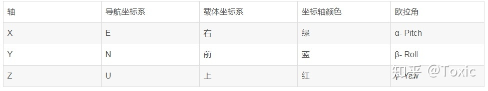 右前上坐标系下,Z对应偏航,Y对应横滚,X对应俯仰。所以在常用的姿态旋转顺序(Yaw-Pitch-Roll)中,对应的旋转方式为(Z-X-Y)。