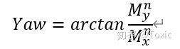 计算出来的夹角是正还是负? 和载体坐标系有关,如果z轴朝下,根据右手定则,那么载体的旋转正方向为顺时针,那么得到的偏航角就是负的。