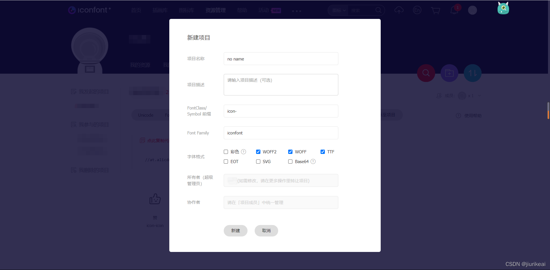 1.新建一个项目,用于存放该项目应用的所有图标,项目名称自定义。