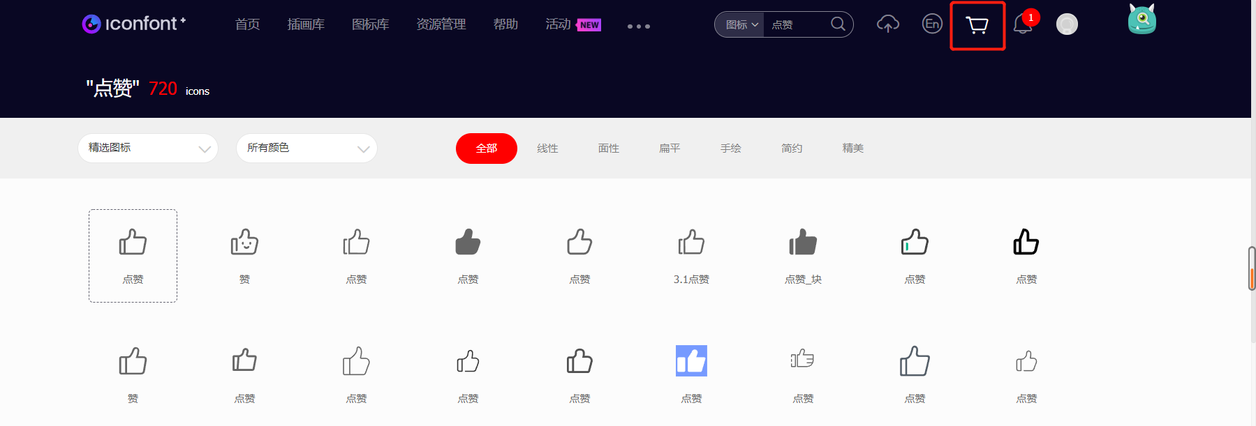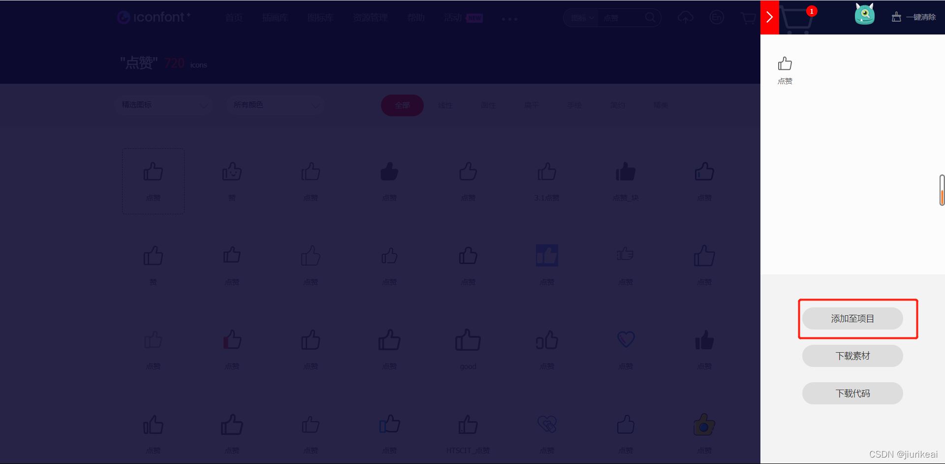 2.挑选自己心仪的图标,并点击添加入库