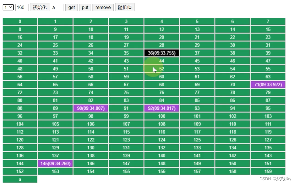 160已经满容量,添加一个a进去。先从其中挑五个值,36时间最早。