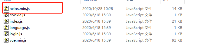 https://unpkg.com/axios/dist/axios.min.js 复制出axios的js代码 在本地保存起来,并以js文件格式命名