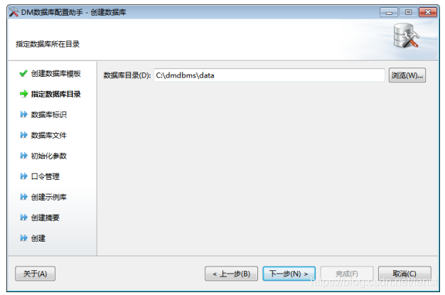 - 选择数据库目录 用户可通过浏览或是输入的方式选择数据库所在目录。如下图所示:
