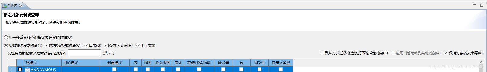 勾选需要迁移的表对象
