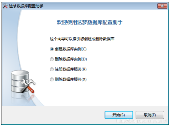 - 若用户选中创建数据库选项,点击“初始化”将弹出数据库配置工具。如下图所示: