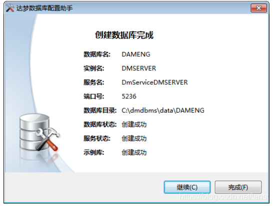 点击完成,安装初始化数据库完成。